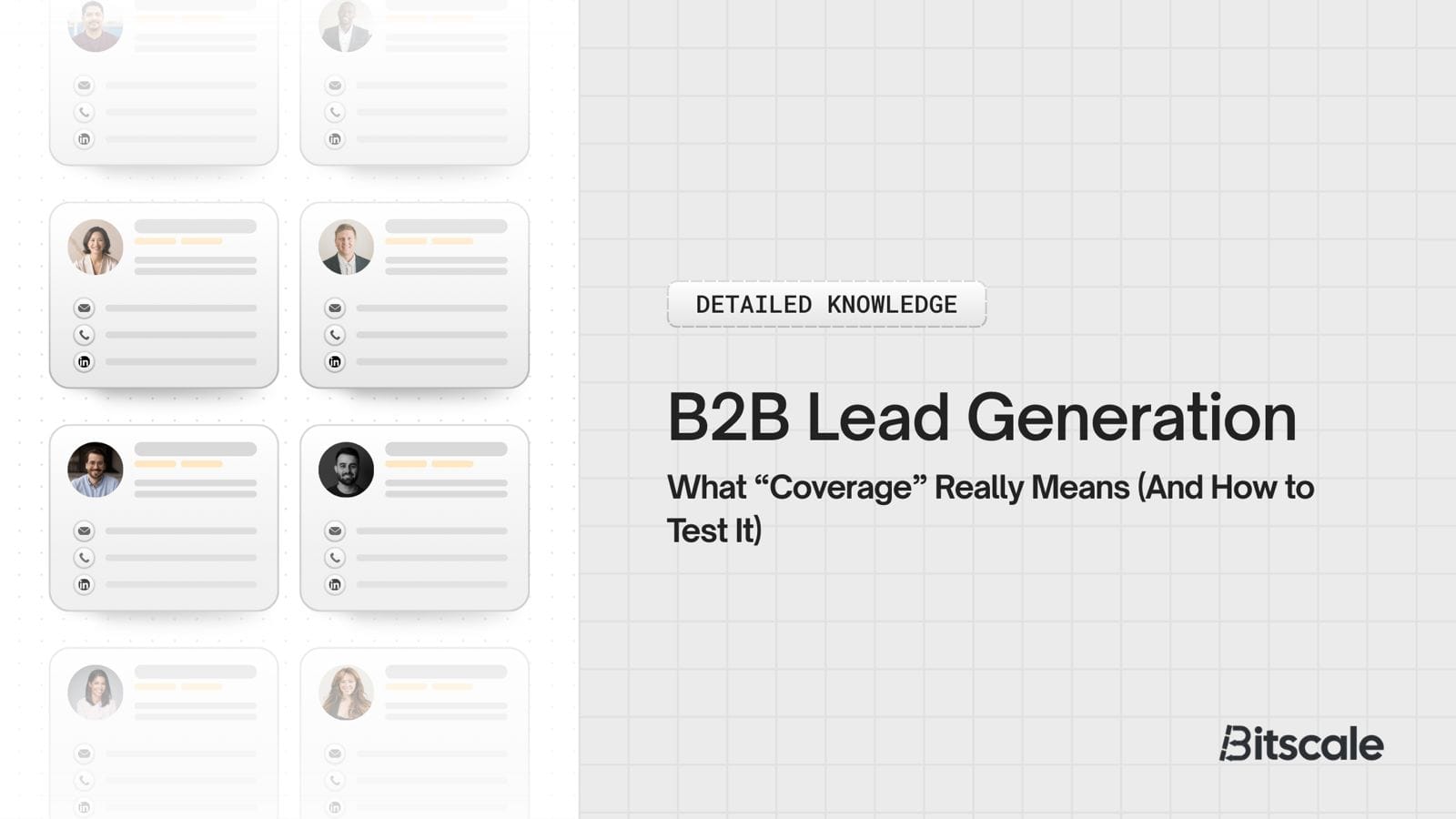 B2B Lead Generation often looks simple on the surface - define your ICP, build a list, launch outreach, and book meetings. But in reality, most performance issues don’t come from messaging or cadence. They come from the foundation: contact data coverage. If your database lacks accurate, complete, and relevant records within your target segment, even the best campaigns will underperform. Before you scale outbound, it’s worth understanding what “coverage” actually means - and how to measure it pro